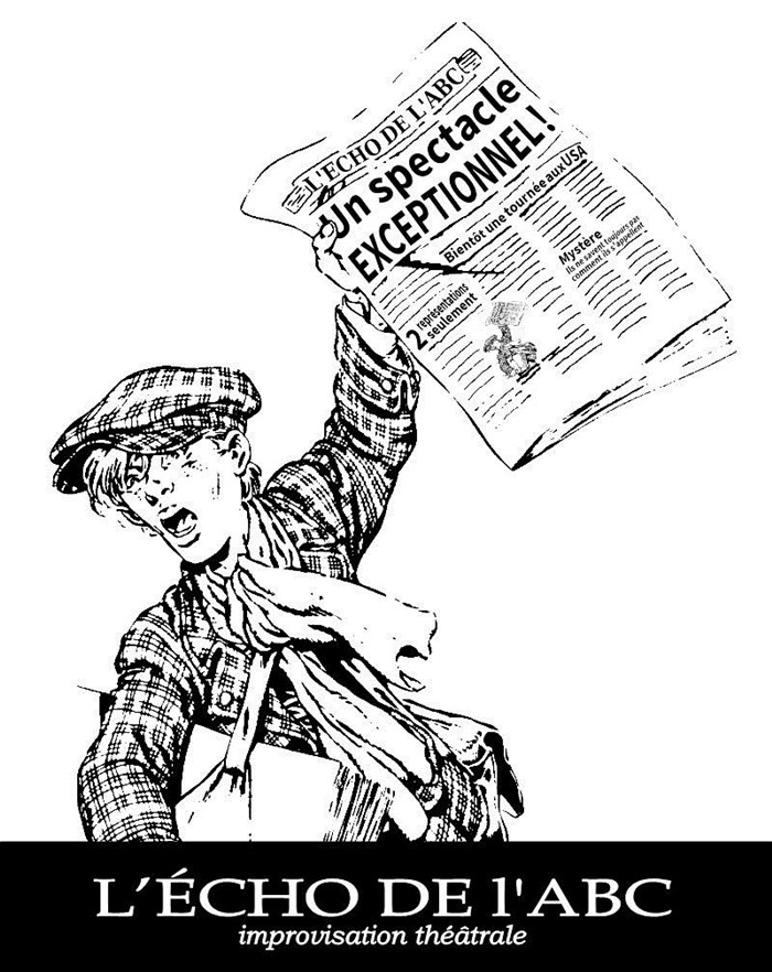 Ne croyez pas les rumeurs : la presse improvisée libre et de qualité existe encore ! La preuve avec l'Echo de l'ABC, une équipe de journalistes improvisateurs d'élite va écrire des articles jamais vu ni lu ailleurs pour un journal 100% improvisé, 0% langue de bois, une édition unique dont le rédacteur en chef, c'est vous, le public. Alors, n'hésitez plus, choisissez une information de qualité, drôle et rythmée, l'Echo de l'ABC !