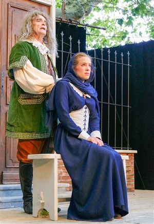 Les jeux de scène exécutés avec brio et les intermèdes chantés font de ce spectacle une adaptation sur tréteaux dans la tradition de la commedia dell'arte, avec chants baroques et orgue limonaire.