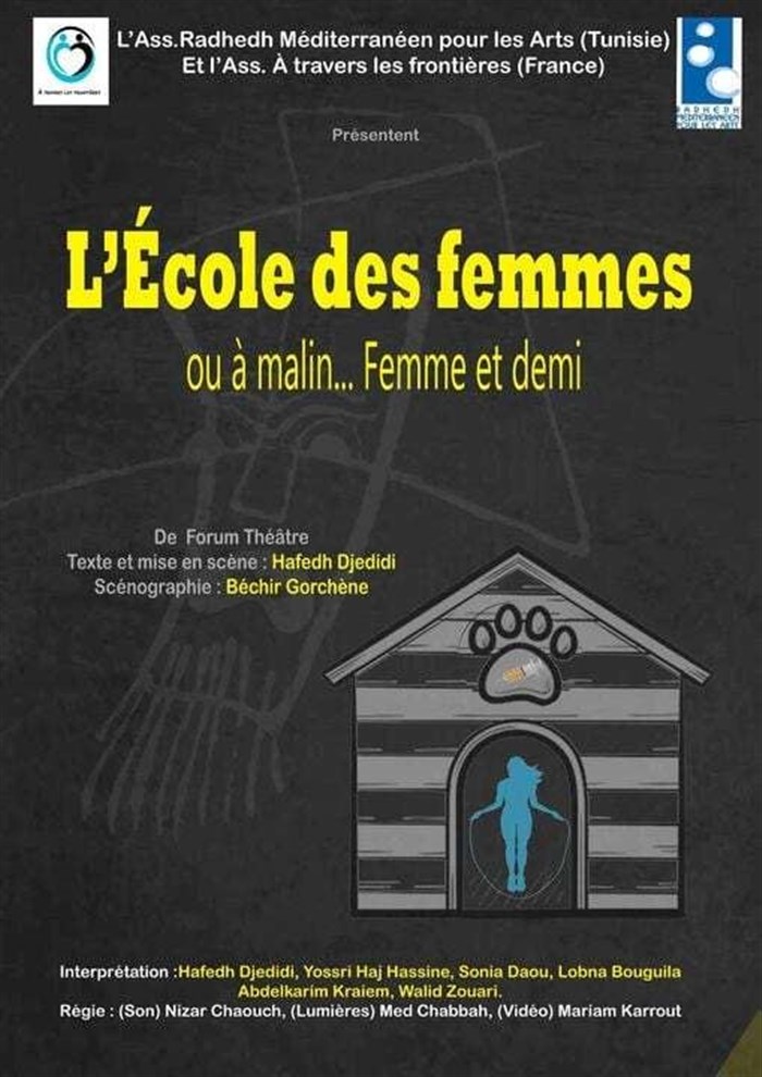 Nous avons succombé à la tentation et réécrit la fameuse intrigue de l'Ecole des femmes à notre manière en la plaçant dans le contexte tunisien. Nous y avons même pris le plaisir d'y convier Molière lui-même qui vient (en prologue) protester contre le metteur en scène pour avoir, comme beaucoup de ses semblables, manipulé son texte. Une manière de rendre hommage à ce grand auteur du 17 ème siècle.