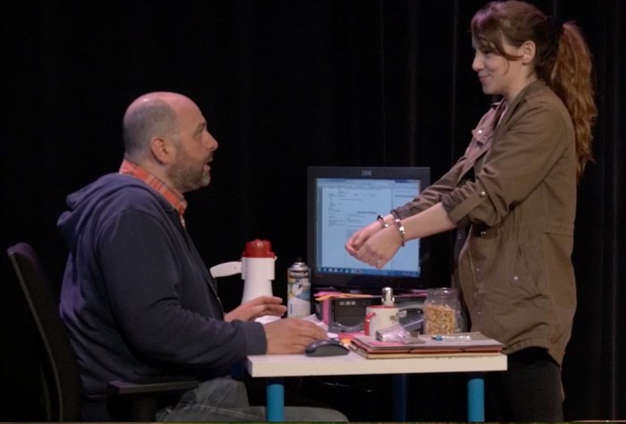 D'abord Mathilde, notre Emmerdante, une battante, anarchiste moderne, politiquement plutôt incorrecte, qui défend ses idées extrêmes avec pertinence, force et humour face à Louis, un quinquagénaire fraichement divorcé, dont les opinions deviennent de plus en plus pessimistes avec l'âge et ses expériences de vie. Malgré leurs idéologies divergentes, leur conversation en forme de garde à vue va amener ces deux natures à se confier plus qu'ils ne l'avaient prévu... jusqu'à s'apprécier sincèrement lorsqu'ils découvrent leur admiration commune pour Brassens.