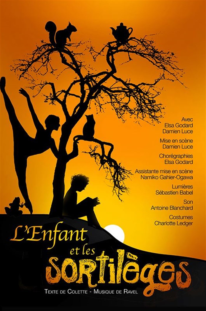 Sur scène, un piano, un pianiste (Damien Luce, écrivain, comédien, pianiste) et une comédienne / danseuse (Elsa Godard, ancienne danseuse au Royal Ballet de Londres) qui incarne tous les personnages de ce conte fantasque imaginé par Colette et mis en musique par Ravel.