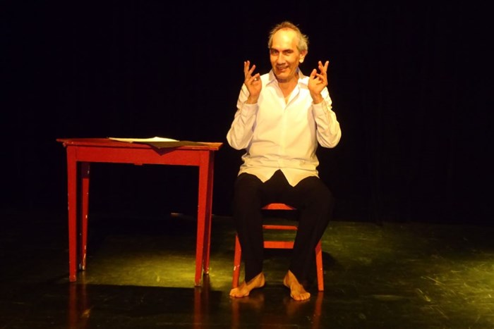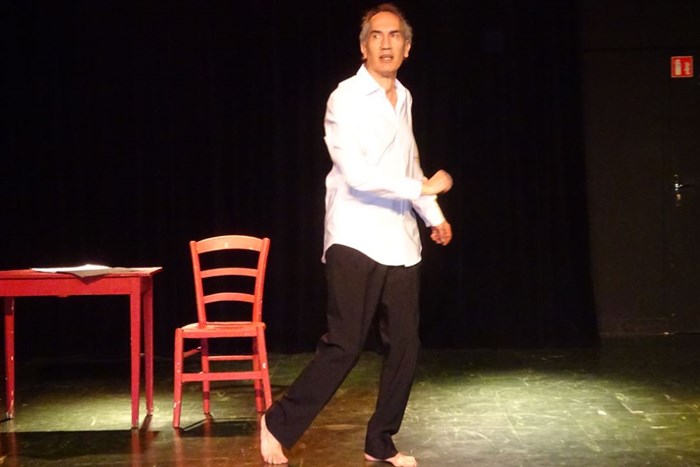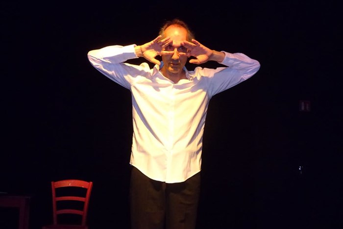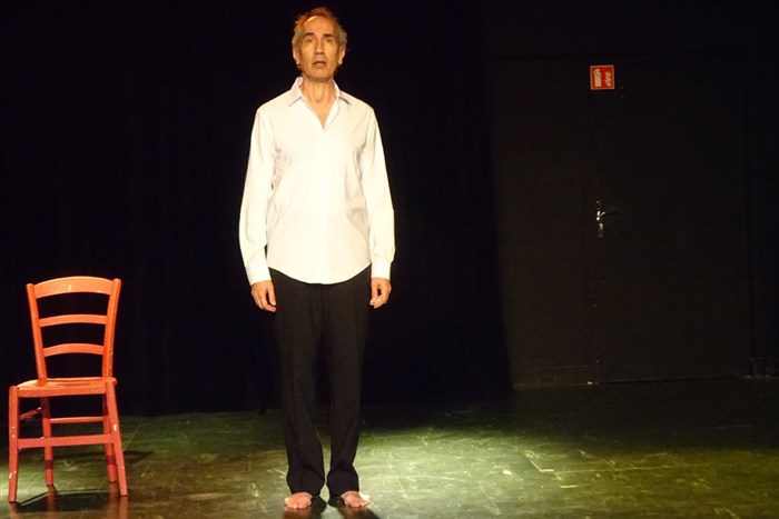 Celui qui se hisse jusqu'au plafond pour assister au spectacle de la vie d'autres humains, en s'élevant est en proie au vertige, à l'émotion de vivre un moment unique. Cette expérience se partage avec Jacques Elkoubi,l'interprète intense, incandescent, d'un texte illuminé, passionnément humaniste.
