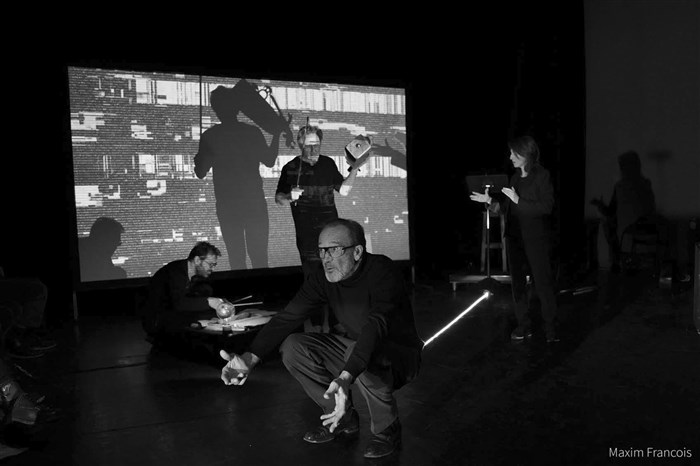La première ligne est une recréation des archives sonores et audiovisuelles tant par le dispositif scénique déployé que par le traitement plastique dont elles feront l'objet.