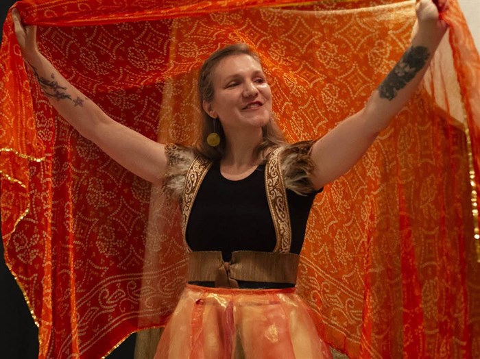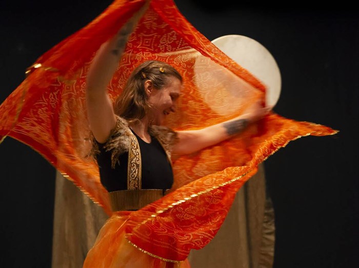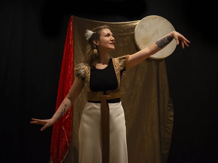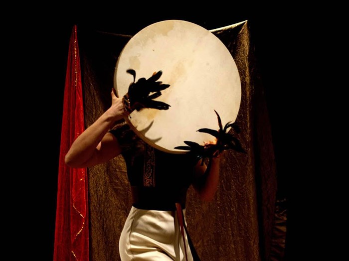 Sandrine délivre cette puissante histoire en agrémentant le récit de chants et danses persanes en s'accompagnant au daf (percussion iranienne).