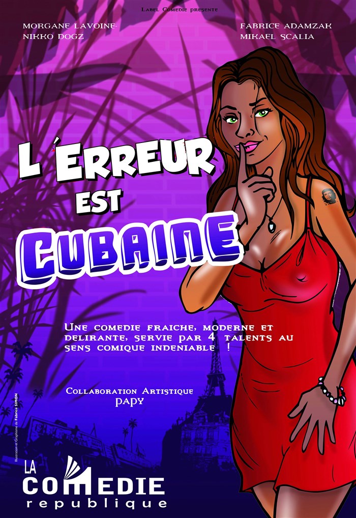 Véritable comédie jouant sur plusieurs tableaux : Boulevard, satirique, comique de situation, burlesque... " L'Erreur est Cubaine " réunit 4 comédiens au talent et au sens comique indéniable et grands habitués des planches.