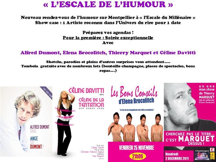 Nouveau rendez-vous de l'humour sur Montpellier à "l'Escale du Millénaire" 1 artiste reconnu dans l'Univers du rire pour 1 date