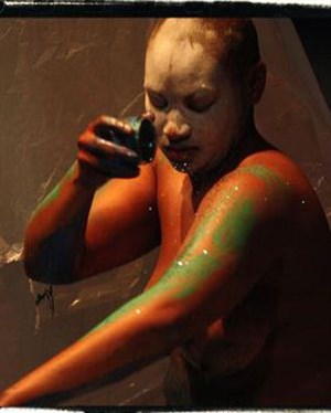 Elle prépare ses couleurs, les applique au pinceau ou avec les doigts, se lave, parfois sagement, parfois salement...