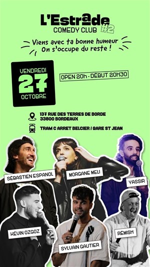 Après une première incroyable, L'Estrade Comedy Club revient ce vendredi 27 avec un line up 5 étoiles !
