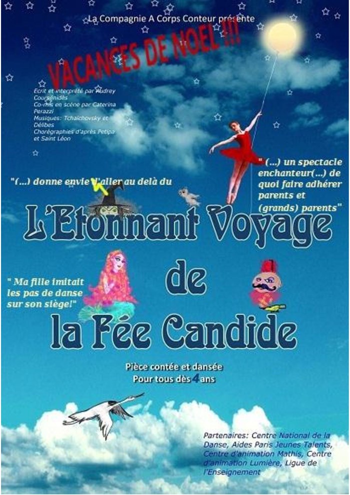 L'an passé nous avions vu cette artiste dans ce même théâtre pour "le garçon qui parlait à l'étoile". "L'étonnant voyage de la fée Candide" est le spectacle qu'elle a monté avant ce dernier. L'un et l'autre sont une merveille pour les yeux et les oreilles. Vous aimez la magie des contes, la danse et la musique classique ? si oui, dépêchez-vous d'aller voir ce beau spectacle.