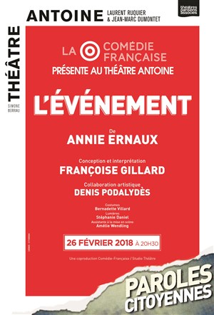 Pour Denis Podalydès,"Annie Ernaux (...) sait rendre compte du réel sans majuscule. Nous nous identifions immédiatement. L'Événement, c'est un récit d'une immense simplicité et d'une immense portée. Il y a du comique et du tragique. Ça raconte un avortement dans les années 1960, à l'époque où c'était interdit, où les femmes se trouvaient seules et démunies dans cette situation. Livre tout à fait inactuel, tout à fait actuel. Je relisais ce texte il y a un an et j'ai pensé que Françoise Gillard devait le jouer ou le dire. Je ne sais pas dire exactement pourquoi. Cela m'a paru évident. Je la voyais tenir ce petit livre et entrer dans cette histoire, en l'incarnant sans forcer, avec autorité et pudeur, à mi-distance. Il y a chez certaines actrices un tact, une réserve, une apparente discrétion qui n'empêchent nullement la puissance expressive, bien au contraire, et leur permet de faire entendre, dans la délicatesse de leur voix, le calme de l'écoute qu'elles imposent, la sourde révolte, l'énergie subversive qu'un tel texte contient."