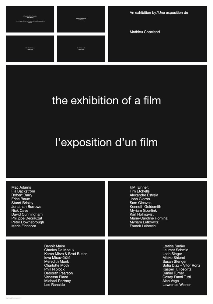 Une exposition pour un contexte, soit un film présenté en salle de cinéma rassemblant 46 artistes majeurs qui ont tous un rapport spécifique au cinéma, qu'ils soient plasticiens, chorégraphes, performers ou musiciens. Contrainte par les propriétés intrinsèques au cinéma, cette exposition s'affirme à la fois comme un film exposé, le film d'une exposition ou encore une exposition filmée.