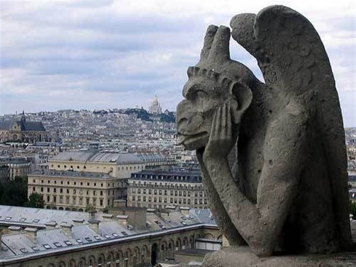 Regardez la façade de la cathédrale sur laquelle grimpait le bossu Quasimodo, sonneur des cloches de Notre-Dame.
