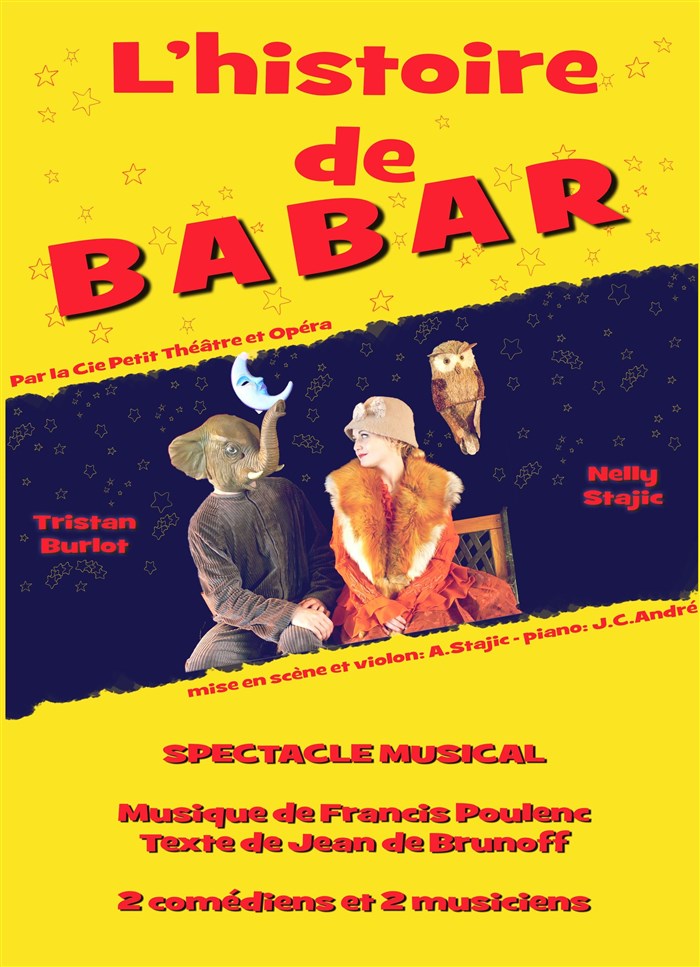 Je suis allée avec ma fille de 14 mois voir cette pièce. Je craignais qu'elle soit trop petite pour apprécier la pièce. Au contraire, elle a adoré, applaudi, rigolé, dansé, écouté attentivement, elle en a pris plein les yeux et les 40 min de spectacle sont passés très (trop) vite. C'est une très jolie performance avec deux musiciens live (violon, piano) et deux acteurs sur scène qui chantent et dansent. Il s'agit de la véritable histoire de Babar, telle qu'imaginée et écrite originellement par Mme de Brunhoff, pas le Babar que vous avez pu connaître à l'écran... A noter quand même qu'il est possible que certains masques d'animaux effraient certains petits. Merci pour ce beau spectacle!