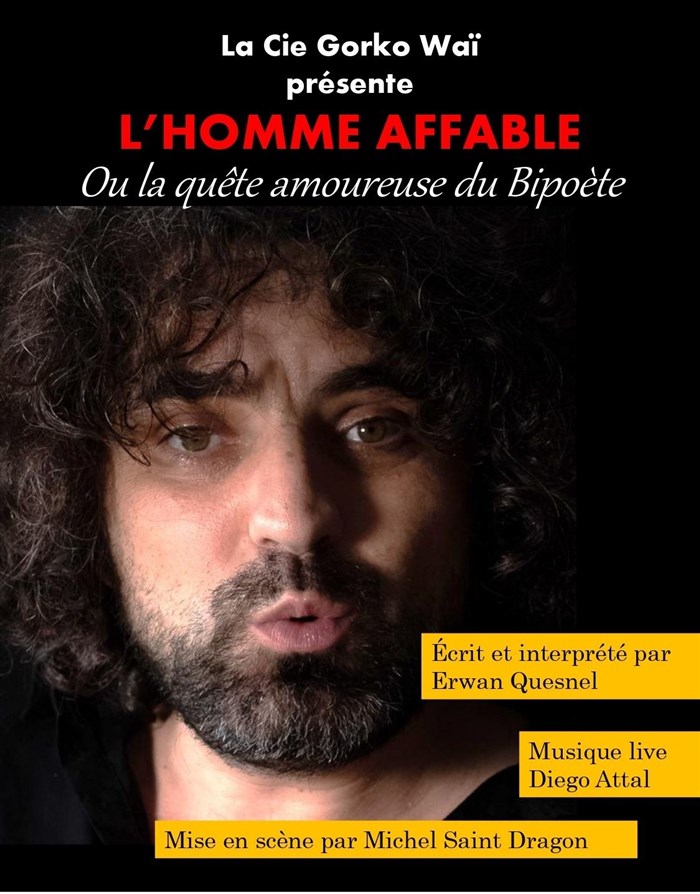 Spectacle rempli de poésie et de sensibilité. Erwann écrit comme il respire, virtuose des mots , on est conquis par ses prouesses théâtrales. Il fait participer le public, on ne voit pas le temps passer..... Allez voir l'homme affable je vous le conseille un spectacle que l'on n'a pas l'habitude de voir,un univers à découvrir.
