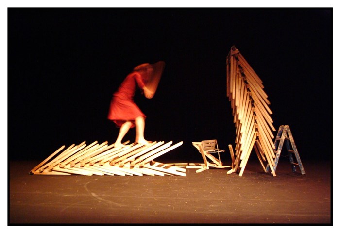 De l'intérieur d'un amas de tréteaux, un homme au corps encombré s'extrait comme il peut ou comme, en vérité, il ne peut pas puisque le voilà misérablement coincé et plaqué par toutes sortes d'objets et de machines. Pourtant, jamais il ne renonce au combat. L'agilité virtuose de Camille Boitel, sa bataille désespérée et libre avec les choses, provoquent une intense jubilation poétique. L'Homme de Hus révéla son travail dès 2003.