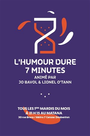 L'humour Dure 7 Minutes est un nouveau plateau composé de 7 humoristes qui auront chacun 7 minutes, le tout animé par Jo Bavol et Lionel O'Tann.