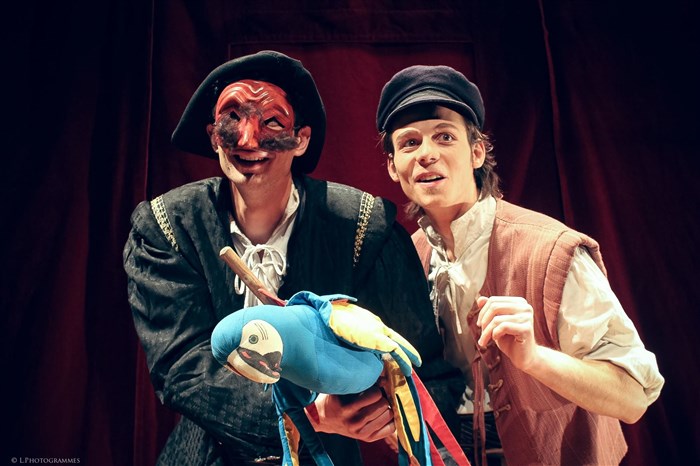 Venez découvrir un chef-d'oeuvre de la littérature anglo- saxonne qui a influencé l'imaginaire collectif, l'épopée du jeune Jim Hawkins. Un spectacle explosif, où les deux comédiens interprètent les 15 personnages de cette aventure en changeant de costumes à une vitesse vertigineuse.