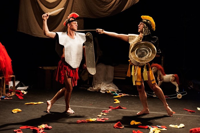 Deux frères reviennent dans le grenier de leur enfance et retrouvent, tels quels, balais, passoires et vieilles fourrures... Tous les objets détournés à l'époque pour incarner héros, dieux et déesses.