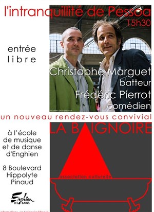 L'acteur Frédéric Pierrot et le batteur Christophe Marguet ont extrait quelques morceaux choisis du Livre de l'intranquillité, dont la batterie devient la caisse de résonnance. Les sonorités percussives soutiennent le narrateur, font vibrer les sensations au-delà des mots.