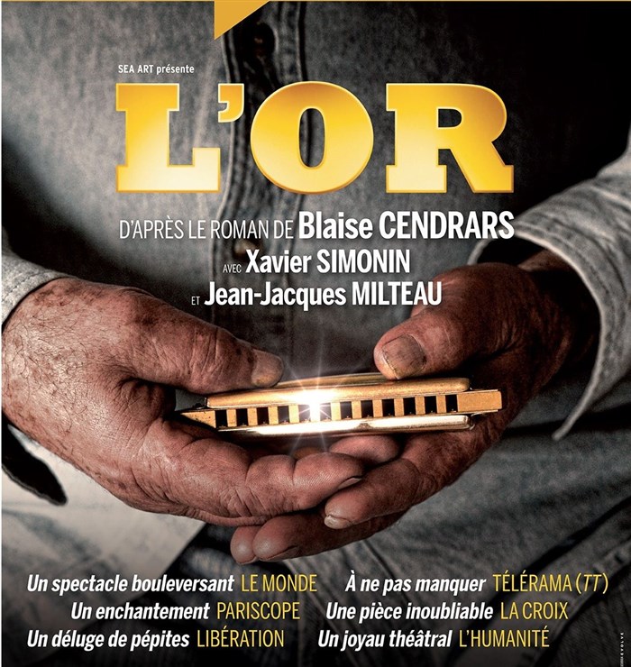 Une pièce qui fascine, une aventure (théâtrale et littéraire)qui nous emporte, un récit épique et un comédien,Xavier Simonin qui réalise une fabuleuse, que dis je, une extraordinaire performance d'acteur sans oublier l'excellent Jean Jacques Milteau qui insuffle, par le truchement de son harmonica et de quelques accessoires, le souffle musical à cette aventure épique! J'ai tellement aimé cette pièce que j'ai emporté dans mes bagages le CD qui retrace le destin superbe et tragique du général Suter, sa conquête de la Californie...Quand une pépite se fait caillou dans la chaussure,l'homme conquérant perd pied et ne court plus qu'à sa ruine...Cette pièce est exceptionnelle tant par le sujet, la mise en scène et la fabuleuse interprétation de Xavier Simonin et le merveilleux accompagnement musical...Un voyage-aventure dont on garde en mémoire les images flamboyantes, les vastes étendues ,les musiques, les odeurs, les sensations...comme dans un rêve éveillé