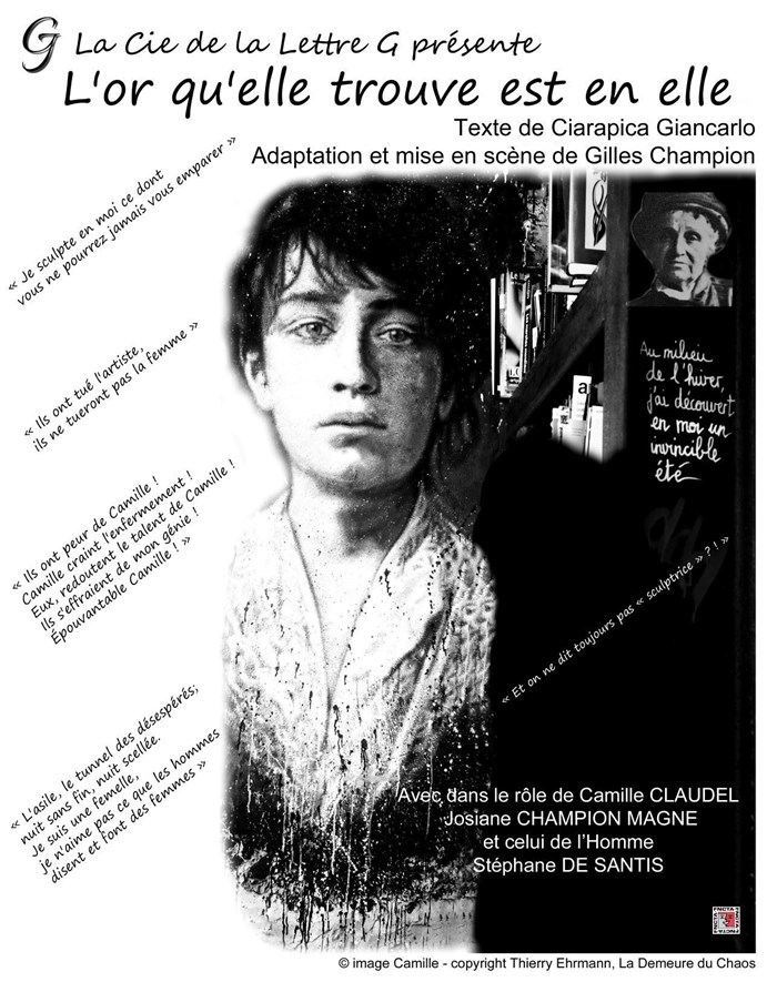 L’événement L'or qu'elle trouve est en elle : Camille Claudel , 30 ans d'art et 30 ans d'enfermement, de Giancarlo Ciarapica de type Théâtre contemporain, organisé ici :