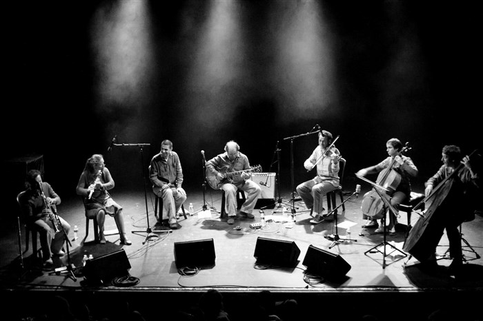 Voix, guitare électrique, flûte, violon, violoncelle, contrebasse et sax donnent un équilibre entre cordes et souffles, avec densité et finesse.