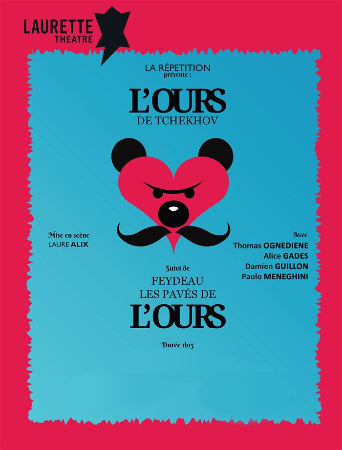 2 courtes pièces de Tchekhov et de Feydeau jouées avec passion par 3 jeunes comédiens prometteurs. C'est léger, c'est rythmé et très bien interprété. Le théâtre Laurette est un petit théâtre de quartier ce qui implique une proximité avec la scène et les comédiens. Une jolie surprise !