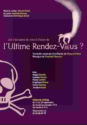 Qui s'occupera de vous à l'heure de L'ultime rendez-vous ? Une comédie musicale horrifiante de Vincent Vittoz sur une musique de Raphaël Bancou.