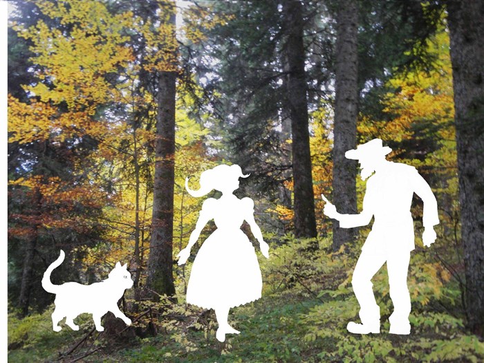 Féérie pour figurines, théâtre d'ombres et deux comédiennes.