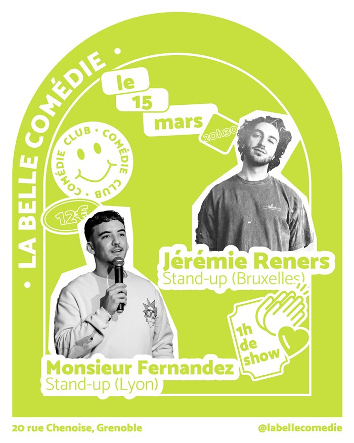 L’événement La Belle Comédie : Jérémie Reners (Bruxelles) / Monsieur Fernandez (Lyon) de type Plateau d'humoristes, organisé ici :