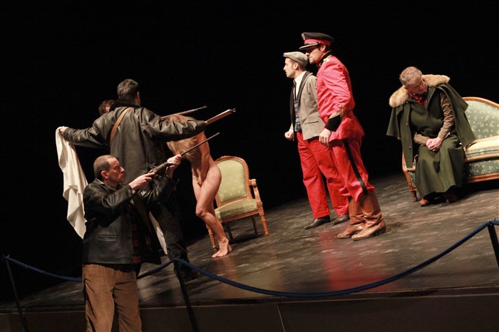 "La fille de l'auteur a confié à Jean-Philippe Daguerre le soin de mettre en scène cette pièce cynique... Des aristos odieux et prétentieux, des révolutionnaires bas de plafond, tous sont caricaturés... Burlesque et intelligente.