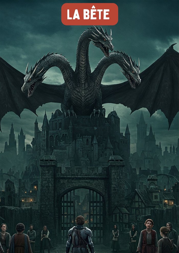 Un dragon à trois têtes règne sur une ville depuis des siècles, terrifiant et soumettant ses habitants.