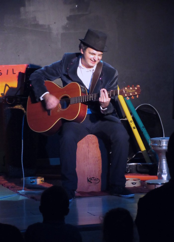 Ses amis le tambour, la guitare, le ukulélé, l'accompagnent pour le plus grand plaisir des petits et grands.
