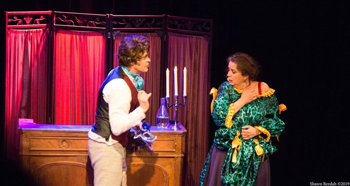 Une pièce de Labiche, et qui plus est peu connue, voilà qui ne manque pas de piquer la curiosité de tout festivalier ,même blasé ! Et bien, plus qu'une surprise, c'est une petite révélation que cette troupe très équilibrée nous a donné ce soir là. Le rythme de la mise en scène, les respirations musicales, le décor simple et chaleureux, les costumes, et l'interprétation généreuse des comédiens donnent à ce généreux travail de troupe une prodigieuse couleur, vibrante et chaleureuse. Quatre comédiens sur les six jouent chacun très habilement deux personnages. Complicité, inventivité, fluidité marquent cette troupe constituée de belles individualités. Mention spéciale pour les deux comédiennes de cette mémorable soirée dont Meaghan Dendraël et son double rôle !