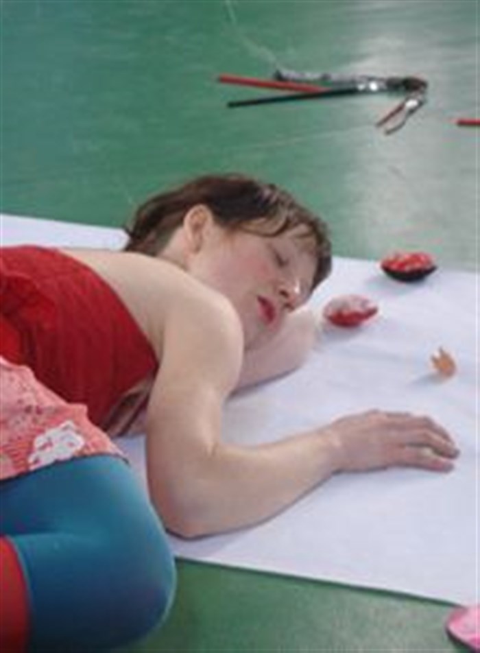 Emilie Pastèque ramasse, empile, entasse toutes sortes d'objets : noix, cailloux, coquillages, branches, rubans et petits os de poulet. Collection hétéroclite au creux de laquelle elle peut se cacher.