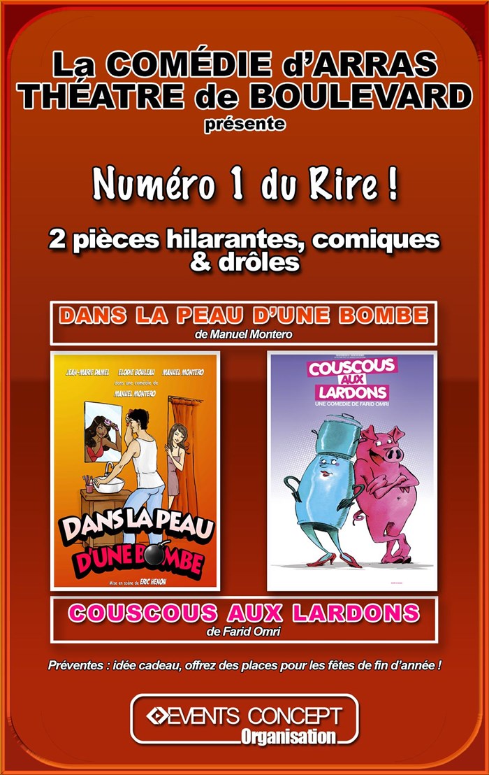 La Comédie d'Arras présente 2 pièces de boulevard, Dans la Peau d'une bombe de Manuel Montero et Coucous aux lardons de Farid Omri, Rires!