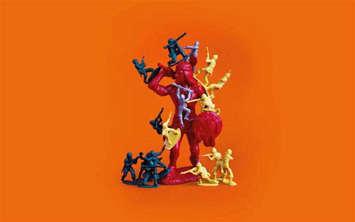 Des figurines de cowboys et d'indiens en plastique évoluent dans un paysage étonnant dont certains éléments sont de chair et de sang : une jambe, un bras ou une nuque se font colline ou montagne du pays colonisé. De la soumission des nouveaux territoires par les armes à l'exploitation des ressources naturelles en passant par la mise au pas des populations, Dorothée Saysombat et Sika Gblondoumé évoquent chaque étape de l'acte de domination.