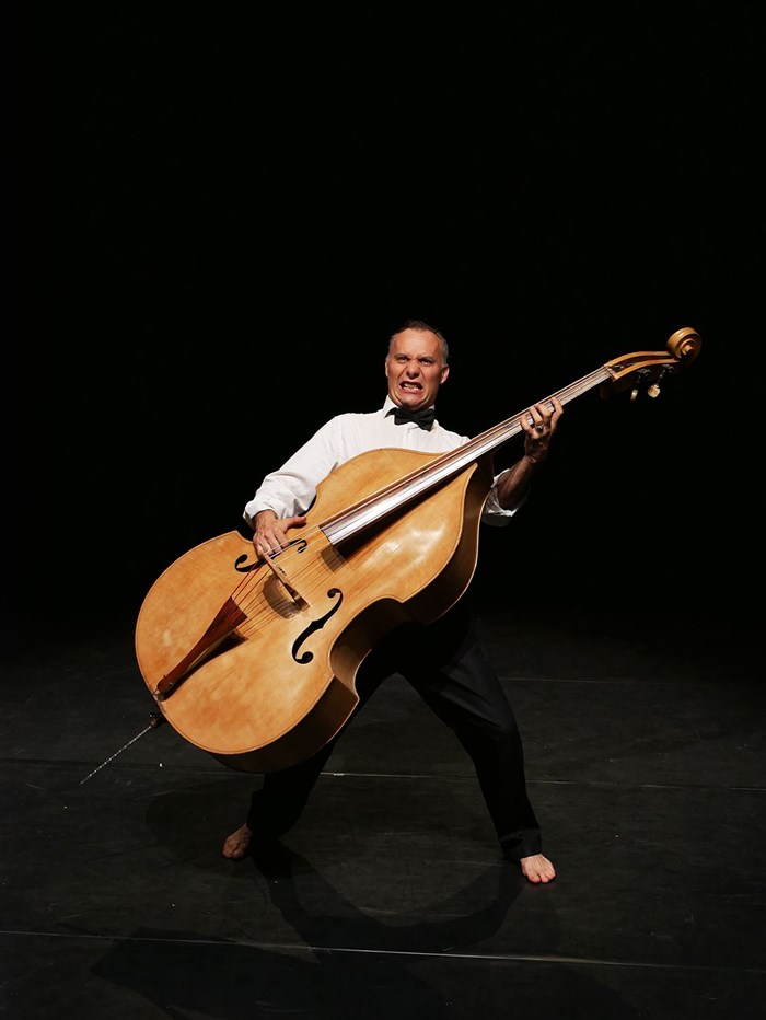 Stéphane Alvarez, dans le rôle d'un contrebassiste en crise existentielle, nous décrit avec passion et humour, le quotidien d'un musicien d'orchestre aux côtés de l'un des plus indispensable, mais ô combien encombrants, instruments.