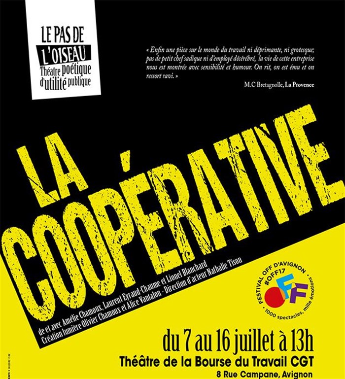 Ils tâtonnent, comme chacun d'entre nous, artisans d'un mouvement collectif à ré-inventer. Spectacle joyeux au coeur de la société, La coopérative raconte la complexité du chemin vers un autre modèle d'entreprise.