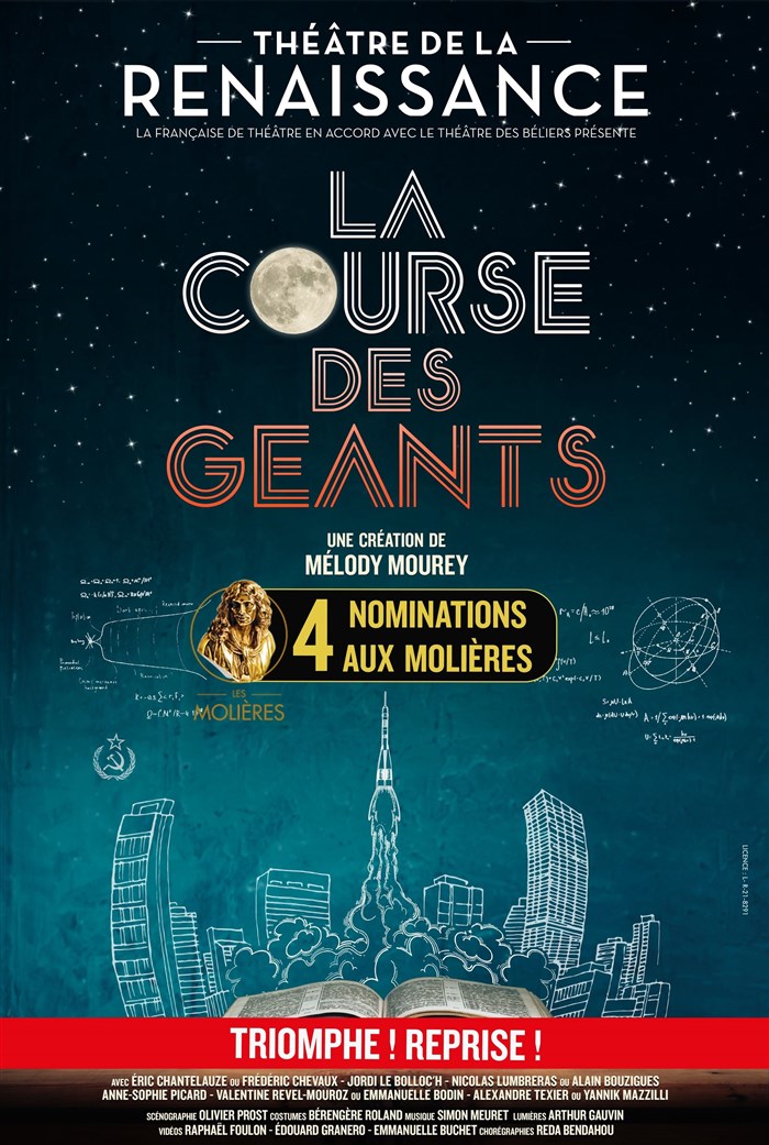 Après 4 nominations aux Molières, plus de 200 dates à Paris et une tournée en France, La Course des Géants s'installe au Théâtre de la Renaissance pour tout l'été.