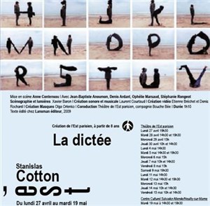 L’événement La dictée de type Théâtre Contemporain, organisé ici : Théâtre de l'Est Parisien -