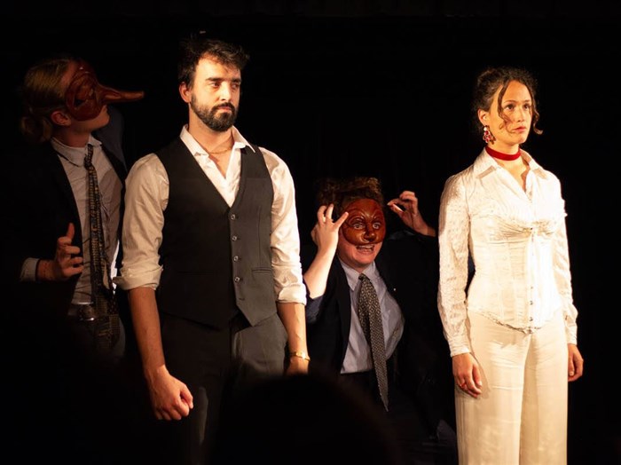 Masques, théâtre physique, danse. Ici tout nous a permis de donner corps à la langue ciselée et précise de Marivaux. Beaucoup d'émotions, de rire, de stupeur sont en rendez-vous de cette rencontre entre humains "des premiers temps ". Nature et Culture restent toujours en opposition et complément au bout de la pièce.