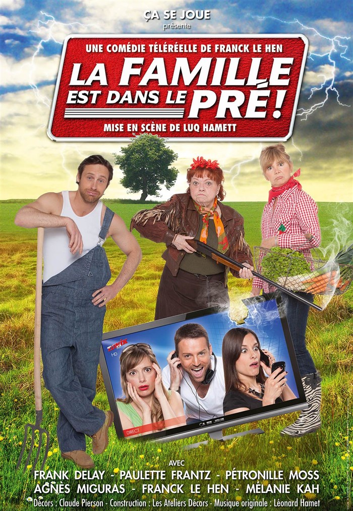 La famille est dans le pré ! est une comédie actuelle qui aborde pour la première fois au théâtre les dérives de la téléréalité, dans un festival de situations et de répliques déjantées. Ils vont tous se retrouver confrontés à l'univers d'une émission télé, où tout est permis !