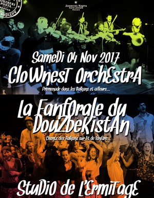 LâĂ©vĂ©nement La Fanforale du Douzbekistan + Clownest Orchestra de type Musique du monde, organisĂ© ici : Studio de L'Ermitage -