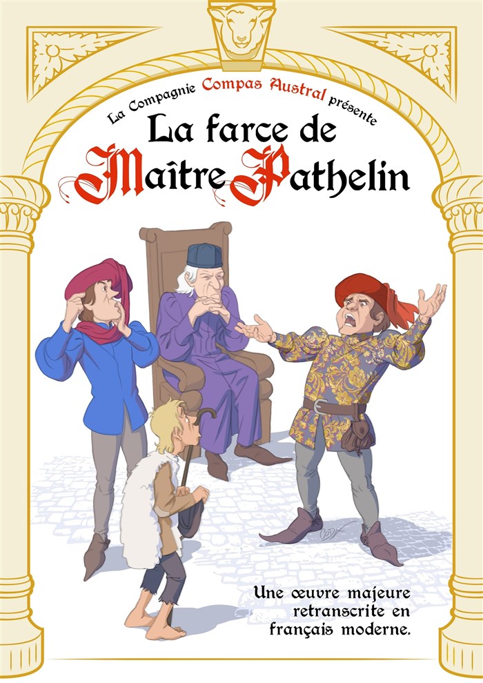L'avocat Pathelin, devenu très pauvre, va tromper avec beaucoup de malices le drapier Guillaume pour ramener à sa femme, les plus beaux tissus de laine qui soient. Mais un jour, il rencontre un jeune berger, pas si naïf que ça qui a besoin d'un avocat... Le trompeur va t il être trompé? Cette pièce s'inscrit dans la tradition de la farce. Sa qualité d'écriture inspirera des grands auteurs du théâtre français et de Comedia Dell Arte.