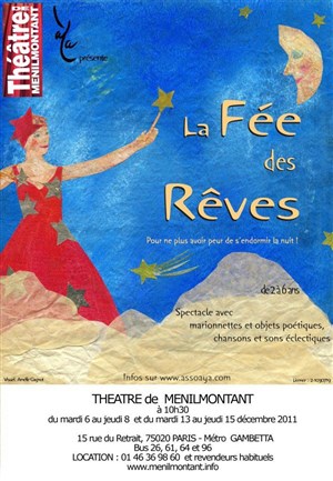 Ma fille de 2 ans et 8 mois a bien aimé ce spectacle mêlant divers genres. Bravo à la comédienne qui a su ne pas se laisser troubler par un très très jeune public et su le faire participer. Cerise sur le gâteau: la fée des rêves accorde un petit moment à chacun à la fin du spectacle. Public ciblé : 2-3 ans. Théâtre sympa (avec parc et aire de jeu juste en face : idéal pour attendre quand on est un peu en avance comme ce fut notre cas).