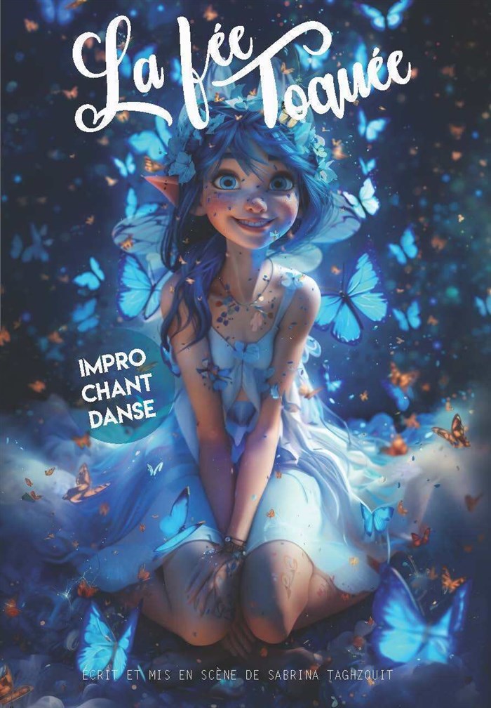Une belle fée bleue un peu perdue sur terre mais qui grâce à l interaction avec les enfants finis par retrouver ses ailes. Decors et mise en scène magiques...😉 Spectacle jeune public à conseiller.