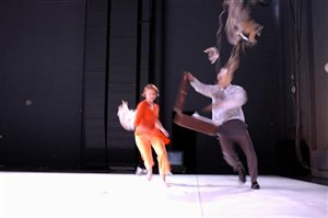 chorégraphie pour deux interprètes et un moniteur vidéo, est une création compagnie les alentours rêveurs .