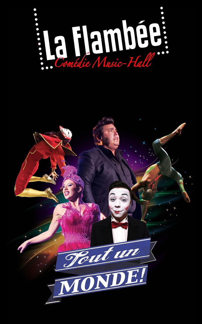 Mêlant humour, chant, danse, numéros visuels, performances spectaculaires et chorégraphies explosives, La Flambée vous réserve un grand moment de surprises, d'émotions et de divertissement !