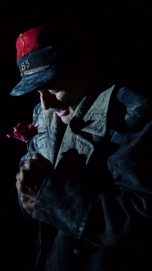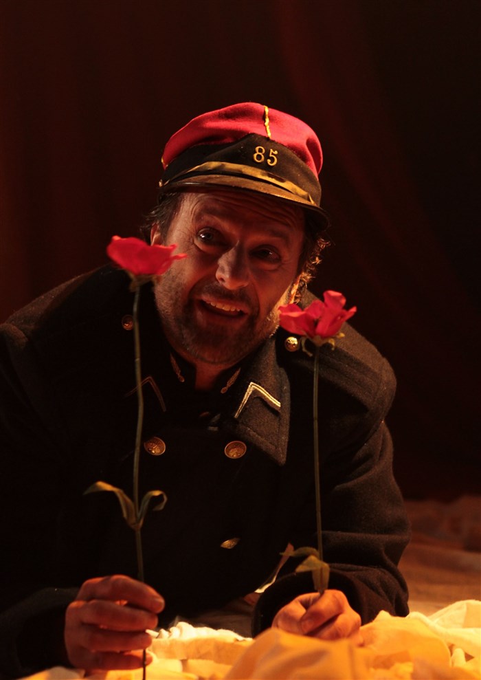 Sur scène, les personnages sont interprétés par un seul acteur, François Bourcier, comme s'ils étaient les mille et une facettes d'un même visage : celui du Poilu de 14-18.